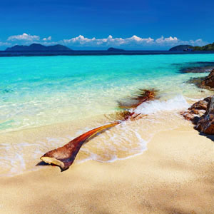 碧海、蓝天、沙滩是加勒比海的三元素。“加勒比”在印第安语意为“勇敢的人”、“正直的人”。